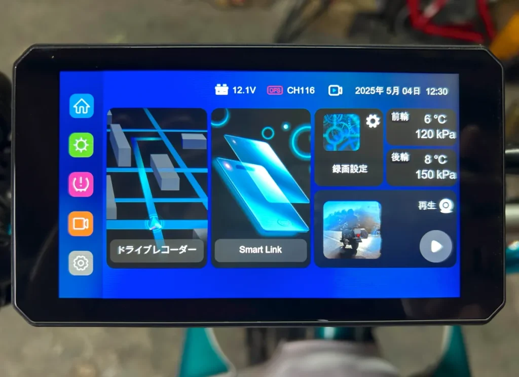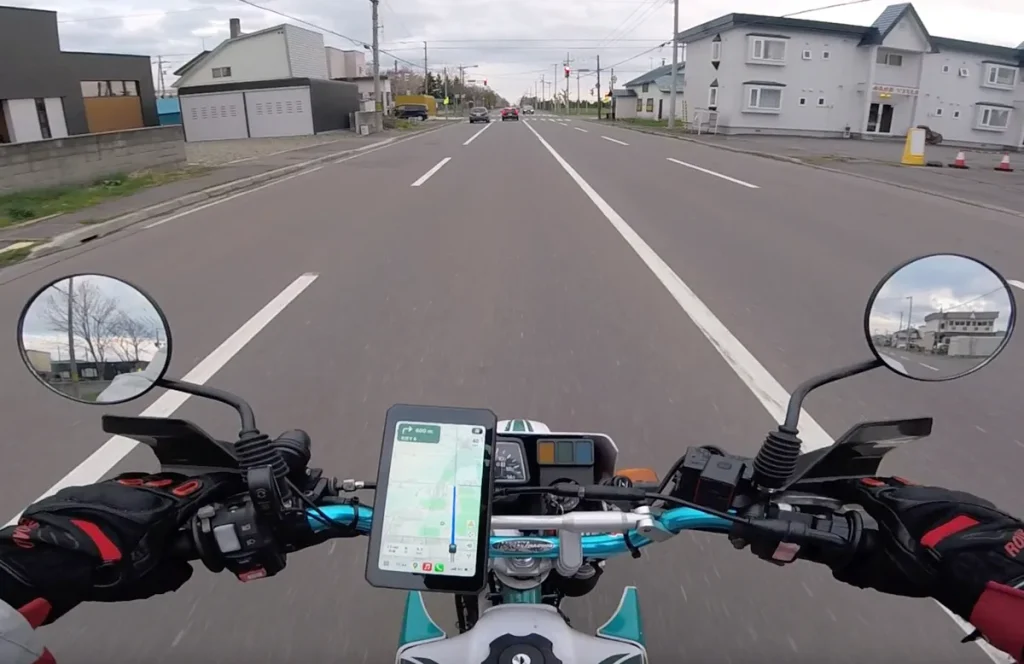 いわゆる「今までありそうでなかった機能」で、例えばモニターの設置場所が限られるバイクでも、縦置きだと比較的レイアウトの自由度が上がること、そしてGoogleMapなどのナビアプリで「横画面より遠くのルートまで表示できる」というメリットがありますYO