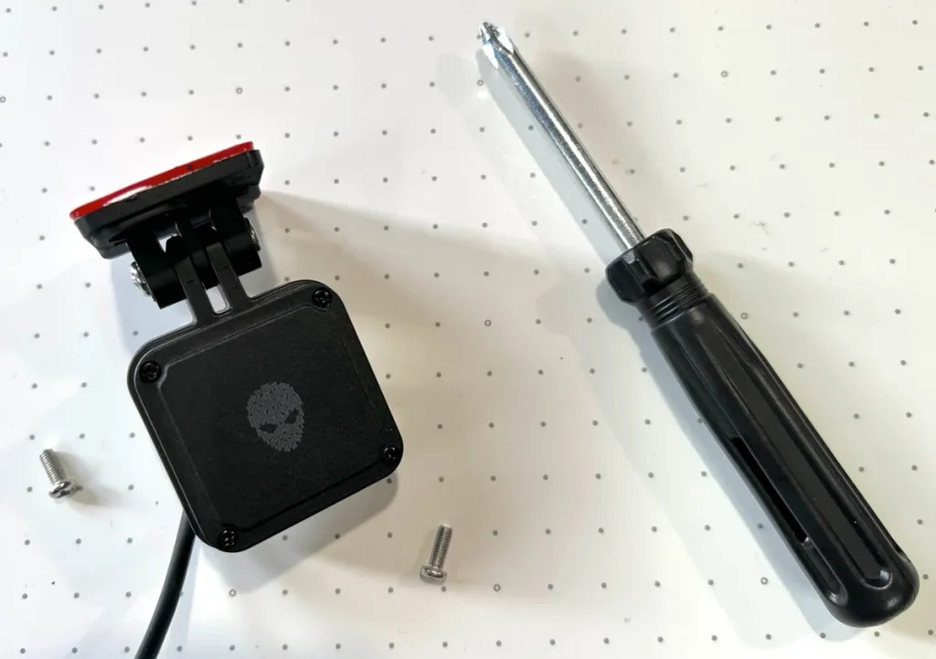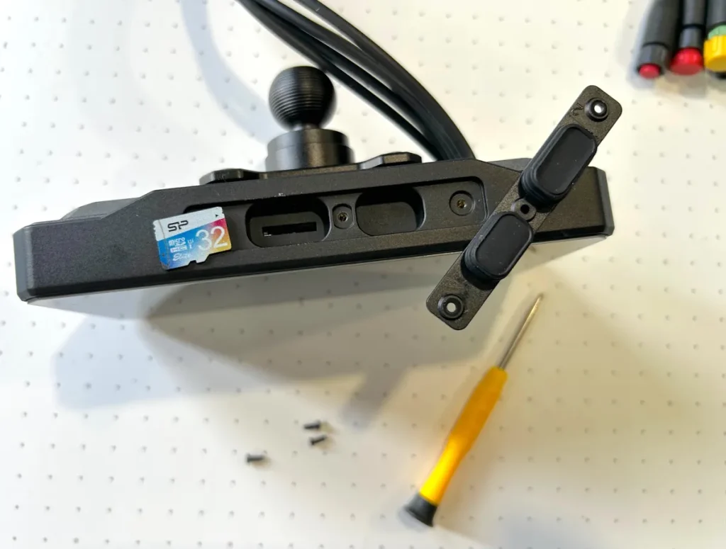 そして、それに加えて付属の工具を使って本体底面のカバーを外すとSDカードスロットがあるので、ドラレコ機能を使う場合はここにMicroSDカードを挿入しておく必要もあります。