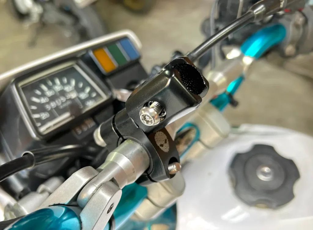 一般的なハンドルを挟み込んで固定するマウントが付属しているので、それをこれまた付属している工具を使ってハンドルに固定します。