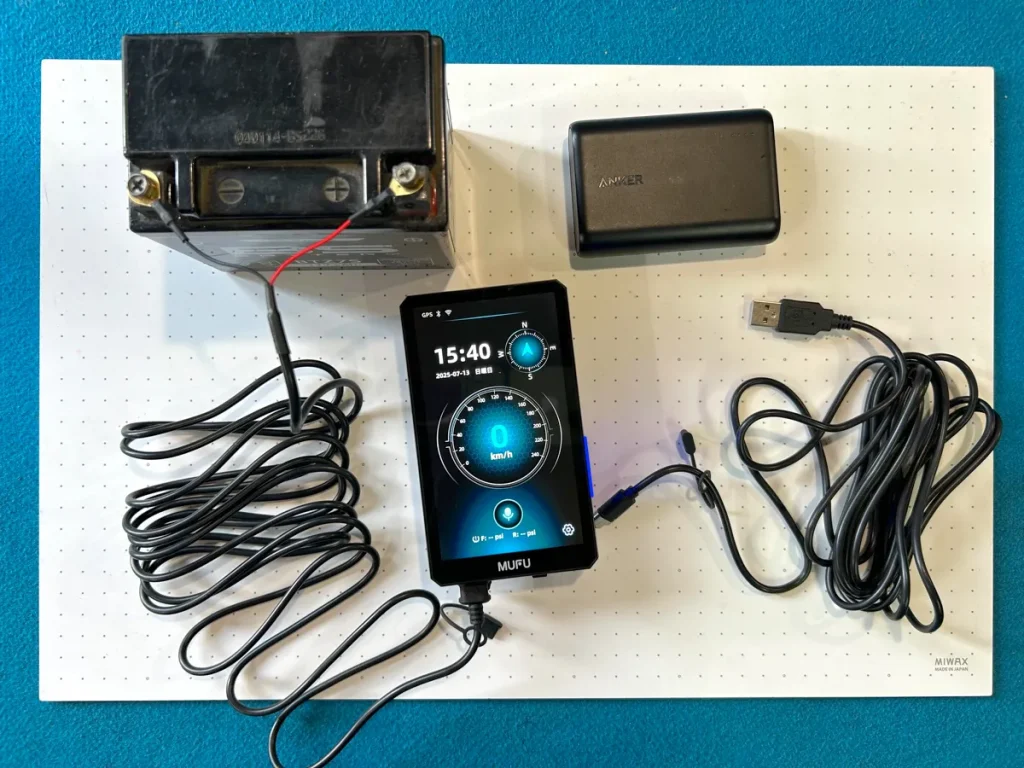 そして、大変ありがたいことに「USB給電」に対応しているので、車体にUSBポートがあれば電源ケーブルを差し込むだけ、もしくは置き場所さえ確保できればモバイルバッテリーでの運用も可能です!